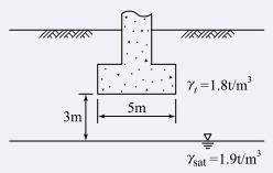 로 나타낼 수 있다. 아래 그림과 같은 경우 극한지지력 공식의 두 번째 항의 단위중량 의 값은?