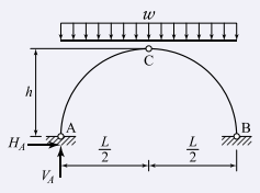 그림과 같은 3힌지 아치에서 A점의 수평반력(
