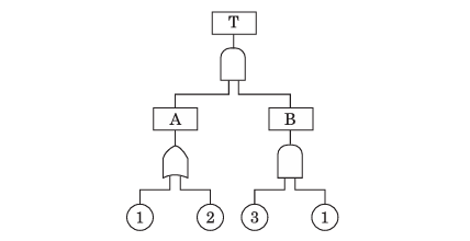 그림과 같은 FT도에 대한 최소 컷셋(minimal cut sets)으로 옳은 것은? (단, Fussell의 알고리즘을 따른다.)