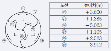 그림과 같은 수준망에서 높이차의 정확도가 가장 낮은 것으로 추정되는 노선은? (단, 수준환의 거리 Ⅰ=4km, Ⅱ=3km, Ⅲ=2.4km, Ⅳ(㉯㉳㉲)=6km)