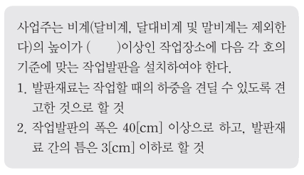 다음은 비계를 조립하여 사용하는 경우 작업발판 설치에 관한 기준이다. ( )에 들어갈 내용으로 옳은 것은?