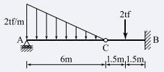 그림과 같이 C점이 내부힌지로 구성된 게르버보에서 B지점에 발생하는 모멘트의 크기는?