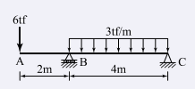 아래 그림과 같은 내민보에 발생하는 최대 휨모멘트를 구하면?