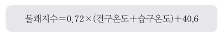 일반적으로 인체에 가해지는 온·습도 및 기류 등의 외적변수를 종합적으로 평가하는 데에는 “불쾌지수”라는 지표가 이용된다. 불쾌지수의 계산식이 다음과 같은 경우, 건구온도와 습구온도의 단위로 옳은 것은?