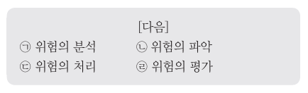 다음의 위험관리 단계를 순서대로 나열한 것으로 맞는 것은?