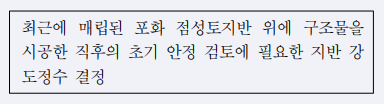 아래 표의 설명과 같은 경우 강도정수 결정에 적합한 삼축 압축 시험의 종류는?
