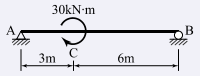 그림과 같은 단순보에서 C점에 30kN·m의 모멘트가 작용할 때 A점의 반력은?