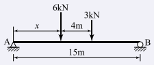 그림과 같은 단순보에서 A점의 반력이 B점의 반력의 2배가 되도록 하는 거리