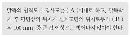 다음은 표준시방서에 따른 기성말뚝 세우기 작업시 준수사항이다. ( )안에 들어갈 내용으로 옳은 것은?