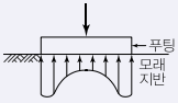 하중이 완전히 강성(剛性)인 푸팅(footing) 기초판을 통하여 지반에 전달되는 경우의 접지압(또는 지반반력) 분포로 옳은 것은?