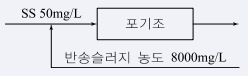 다음 그림은 포기조에서 부유물질의 물질수지를 나타낸 것이다. 포기조내 MLSS를 3000mg/L로 유지하기 위한 슬러지의 반송비는?