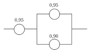 각 부품의 신뢰도가 다음과 같을 때 시스템의 전체신뢰도는 약 얼마인가?