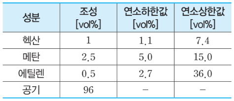 가연성 가스혼합물을 구성하는 성분의 조성과 연소하한값이 다음 [표]와 같을 때 혼합가스의 연소하한값은 약 몇 [vol%]인가?