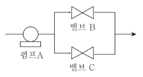 [그림]과 같이 신뢰도 95[%]인 펌프 A가 각각 신뢰도 90[%]인 밸브 B와 밸브 C의 병렬밸브계와 직렬계를 이룬 시스템의 실패 확률은 약 얼마인가?
