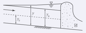 그림과 같은 부등류 흐름에서 y는 실제수심, yc는 한계수심, yn은 등류수심을 표시한다. 그림의 수로경사에 관한 설명과 수면형 명칭으로 옳은 것은?