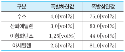다음 [표]의 가스를 위험도가 큰 것부터 작은 순으로 나열한 것은?