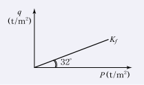 선이 파괴선을 나타낼 때 이 흙의 내부마찰각은?