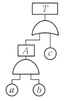 [그림]과 같은 FT도에서 a=0.015, b=0.02, c=0.05이면, 정상사상 T가 발생할 확률은 약 얼마인가?