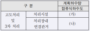 (가)-계획1일최대오수량, (나)-우천시 계획오수량