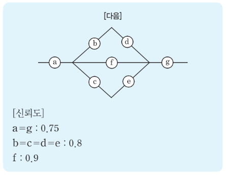 다음 그림과 같이 7개의 기기로 구성된 시스템의 신뢰도는 약 얼마인가?
