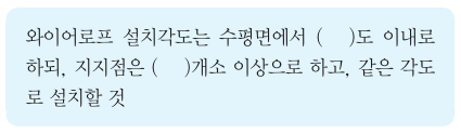 다음은 타워크레인을 와이어로프로 지지하는 경우의 준수해야 할 기준이다. 빈칸에 들어갈 알맞은 내용을 순서대로 옳게 나타낸 것은?