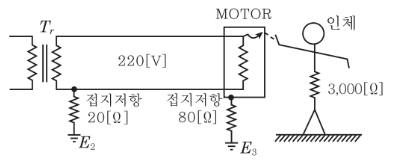 그림과 같은 설비에 누전되었을 때 인체가 접촉하여도 안전하도록 ELB를 설치하려고 한다. 누전차단기 동작전류 및 시간으로 가장 적당한 것은?