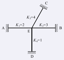 그림과 같은 라멘 구조물의 E점에서의 불균형 모멘트에 대한 부재 EA의 모멘트 분배율은?