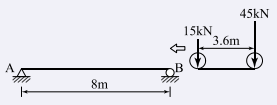 45kN의 재하점이 A점으로부터 4.45m인 곳