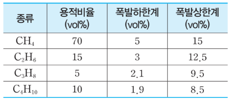 다음 [표]와 같은 혼합가스의 폭발범위(vol%)로 옳은 것은?