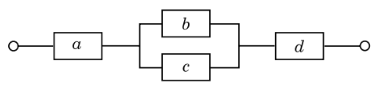 다음 시스템의 신뢰도는 얼마인가?(단, 각 요소의 신뢰도는 a, b가 각 0.8, c, d가 각 0.6이다.)