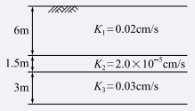 림과 같이 3개의 지층으로 이루어진 지반에서 토층에 수직한 방향의 평균 투수계수(