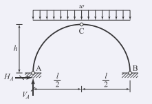 다음 그림과 같은 3활절 포물선 아치의 수평반력(