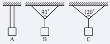 무게 1kgf의 물체를 두 끈으로 늘여 뜨렸을 때 한 끈이 받는 힘의 크기 순서가 옳은 것은?