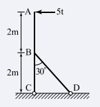 다음 그림과 같은 구조물의 BD부재에 작용하는 힘의 크기는?