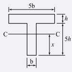 다음 그림과 같은 T형 단면에서 도심축 C-C축의 위치 \overline{y}는?