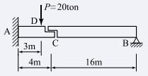 그림과 같은 겔버보에서 하중 P만에 의한 C점의 처짐은? (단, EI는 일정하고 EI=2.7×10^{11}kg\cdot cm^2)