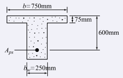 주어진 T형 단면에서 부착된 프리스트레스트 보강재의 인장응력(