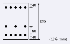 )는?(단, 철근 1개의 단면적은 250mm²이다.)