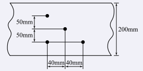 아래 그림의 지그재그로 구멍이 있는 판에서 순폭을 구하면? (단, 구멍직경은 25mm)