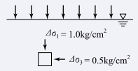 )이 0.5kg/cm² 증가되었다면 간극수압은 얼마나 증가되었는가? (단, 간극수압계수 A=0.5이고 B=1이다.)