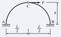 그림과 같은 3힌지 아치의 중간 힌지에 수평하중 P가 작용할 때 A지점의 수직 반력(