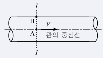 그림과 같이 원형관 중심에서 V의 유속으로 물이 흐르는 경우에 대한 설명으로 틀린 것은?(단, 흐름은 층류로 가정한다.)