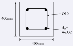 그림과 같은 띠철근 기둥에서 띠철근의 최대 수직간격은? (단, D10의 공칭직경은 9.5mm, D32의 공칭직경은 31.8mm이다.)