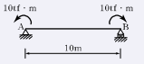 그림과 같은 단순보에서 AB 구간의 전단력 및 휨모멘트의 값은?