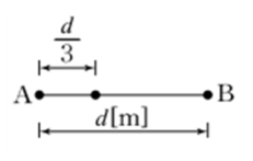 그림과 같이 진공 중에 서로 평행인 무한 길이 두 직선 도선 A, B가 d[m] 떨어져 있다. A, B의 선전하 밀도를 각각