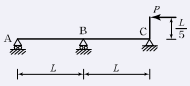 2경간 연속보의 중앙지점 B에서의 반력은? (단,