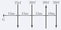 그림과 같은 4개의 힘이 작용할 때 G점에 대한 모멘트는?