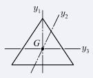 정삼각형 도심을 지나는 여러 축에 대한 단면2차모멘트의 값에 대한 다음 설명 중 옳은 것은?