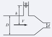 그림과 같은 노즐에서 유량을 구하기 위한 식으로 옳은 것은?(단, 유량계수는 1.0로 가정한다.)