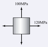 그림과 같이 이축응력(二軸應力)을 받고 있는 요소의 체적변형률은? (단, 탄성계수 E=200,000MPa, 푸아송비 \nu =0.3)
